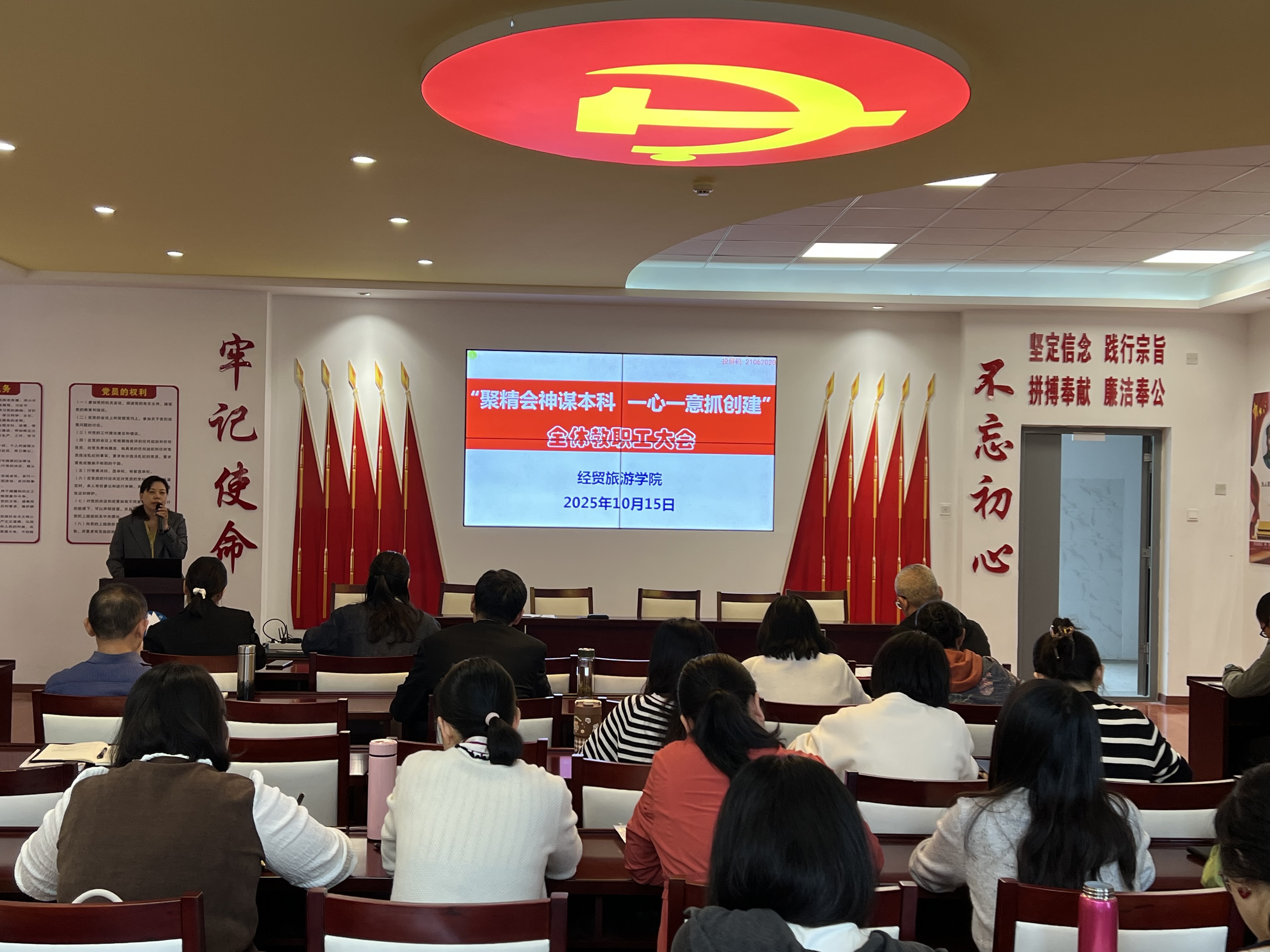10月15日下午,经贸旅游学院在党性体验馆召开10月份政治理论学习会暨教职工大会,全体教职工参加会议,会议由副院长付晓兰主持。