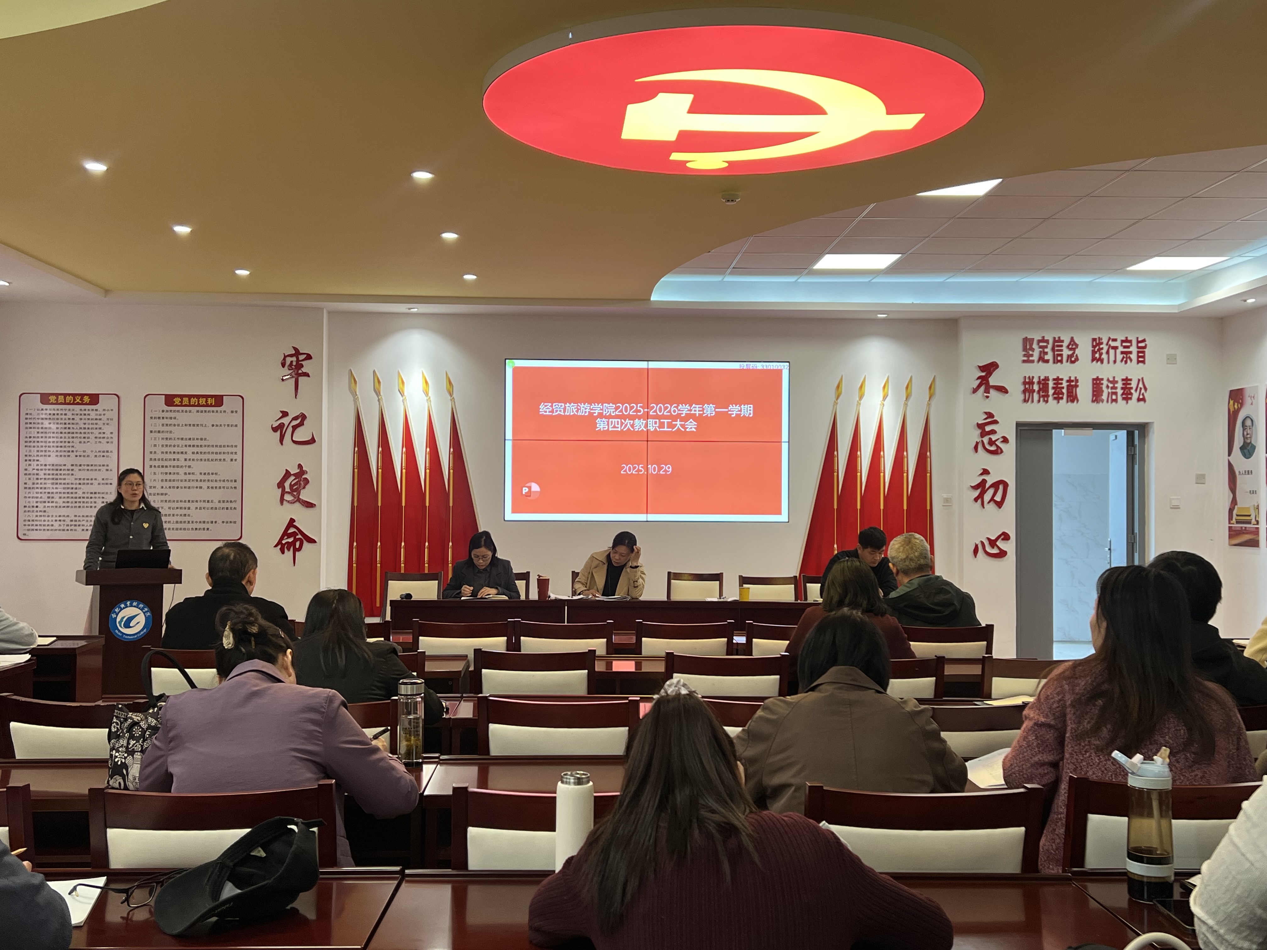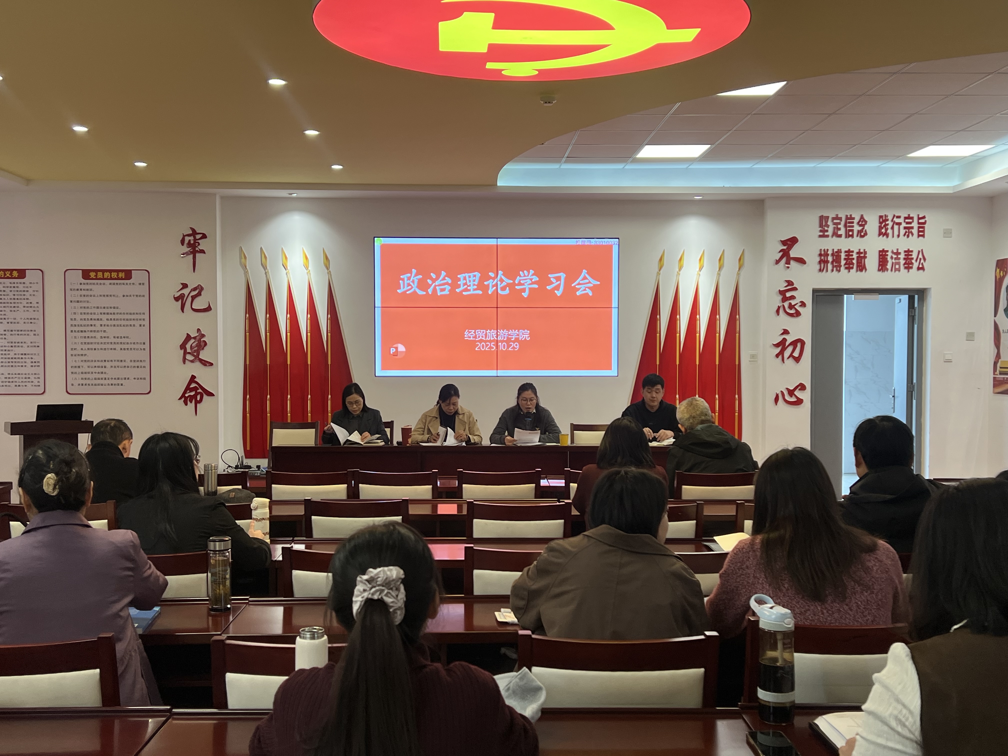 10月29日下午,经贸旅游学院在党性体验馆召开政治理论学习会暨新学期第四次教职工大会。全体教职工参加会议,会议由副院长付晓兰主持。