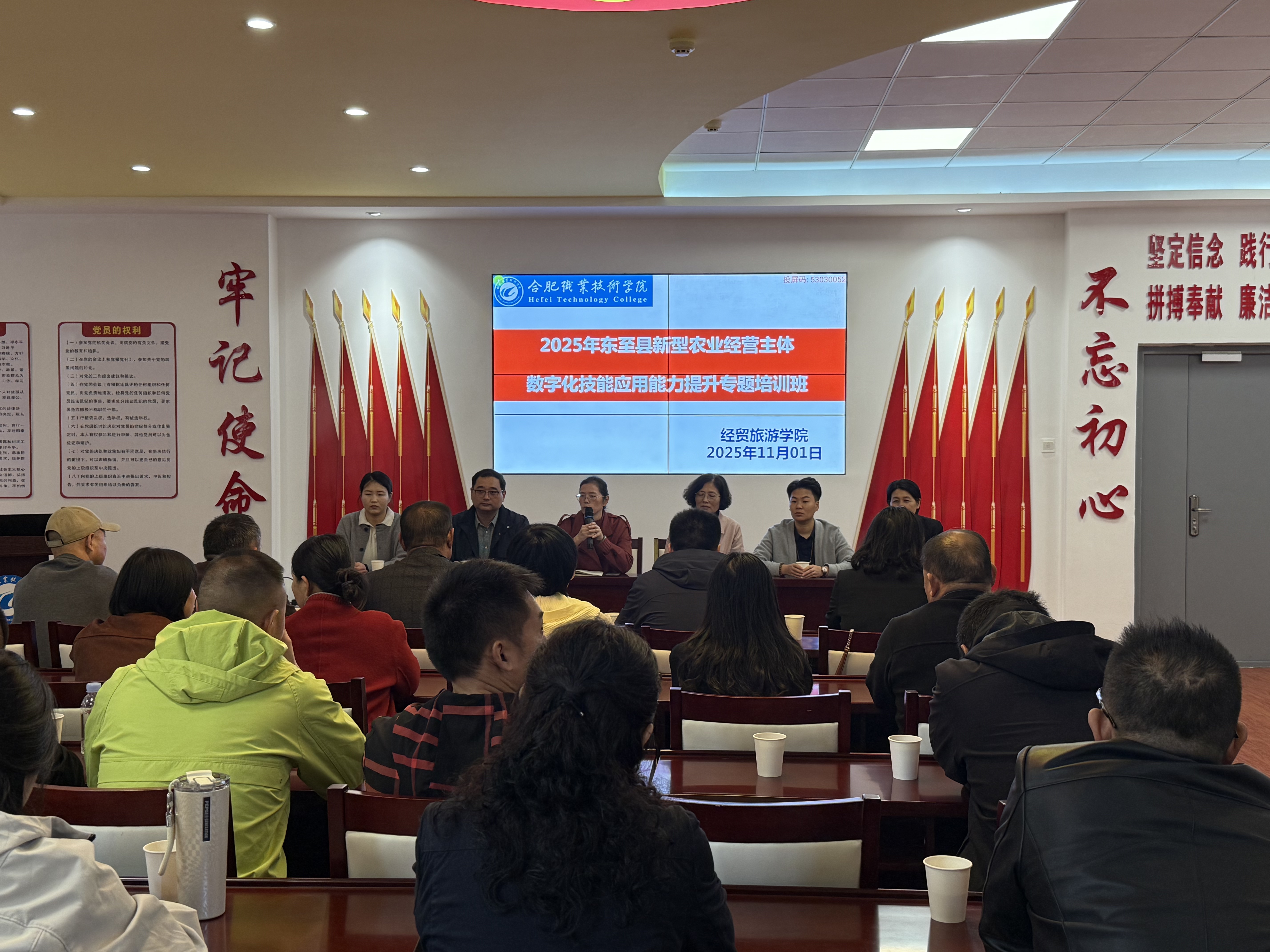 为深化数字技术与农业产业融合,助力新型农业经营主体提升数字化应用技能,11月1日,由池州市江南职业培训学校承办的“2025年东至县新型农业经营主体数字化技能应用能力提升专题培训班”实践实训在合肥职业技术学院经贸旅游学院正式启动。学院电子商务教研室主任、校企合作企业代表及优秀学生代表参与开班式,与来自东至县的新型农业经营主体负责人共探电商赋能农业发展新路径。