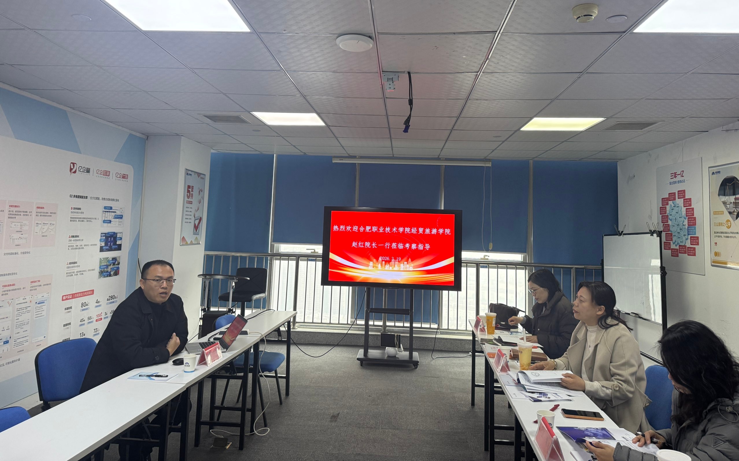 为深化产教融合,精准对接行业需求,进一步提升技能型人才培养质量,3月19日,经贸旅游学院院长赵红、副院长付晓兰、教研室主任王欢及专任教师刘颖一行,前往亿企赢网络科技有限公司安徽分公司、安徽云畅数据科技有限公司开展参观考察与座谈交流活动,围绕校企合作项目、教师实践能力提升及学生实习就业等事宜进行深入探讨。