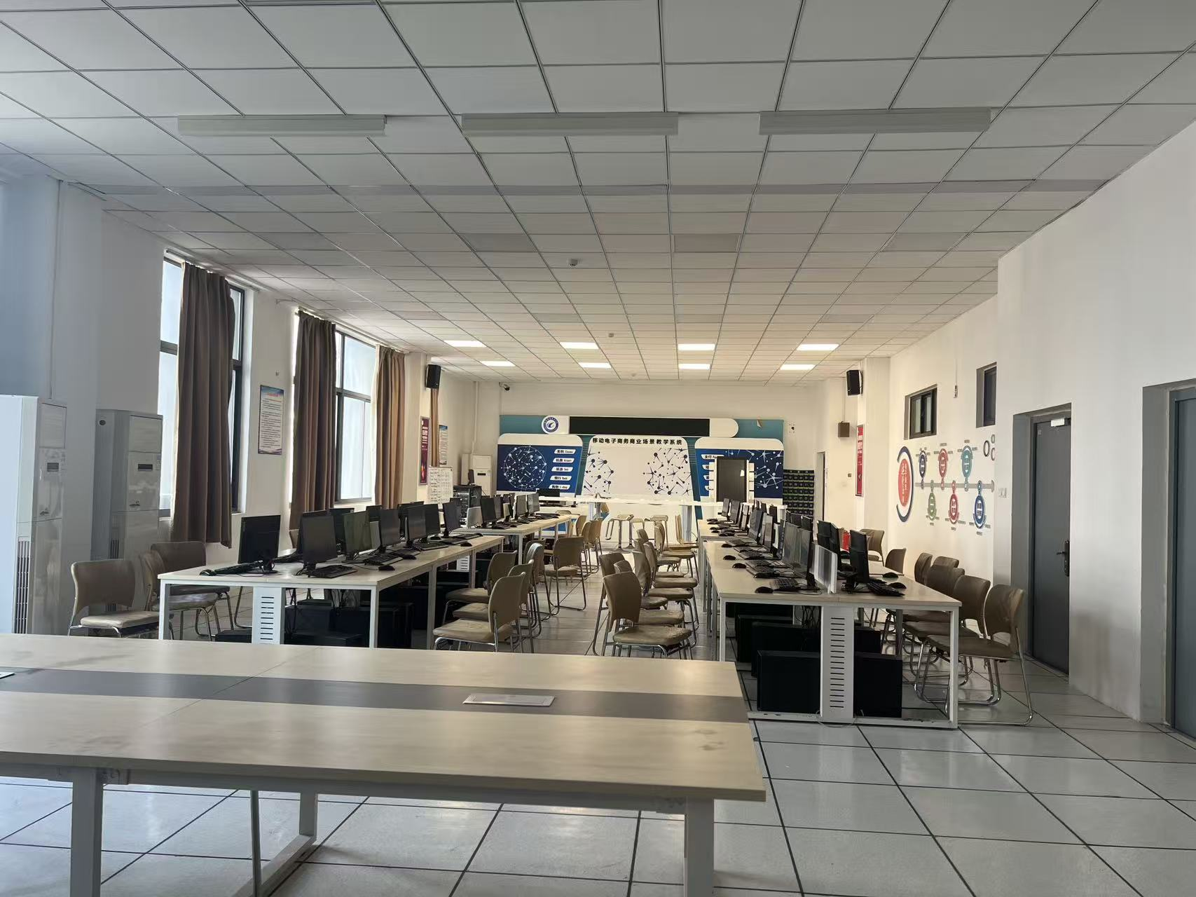 电子商务实训室始建于2018年,建筑面积约140平方米,建设资金总费用为212.897万元,其中教学资源及教学设备费用为184.895万元。实训室以“仿真企业场景、对接岗位需求”为核心理念,依托专业实训软件构建全链路实践教学体系,可开展电子商务运营、营销、数据分析、客户管理、视频拍摄与制作等多维度理实一体化教学和项目化实训。