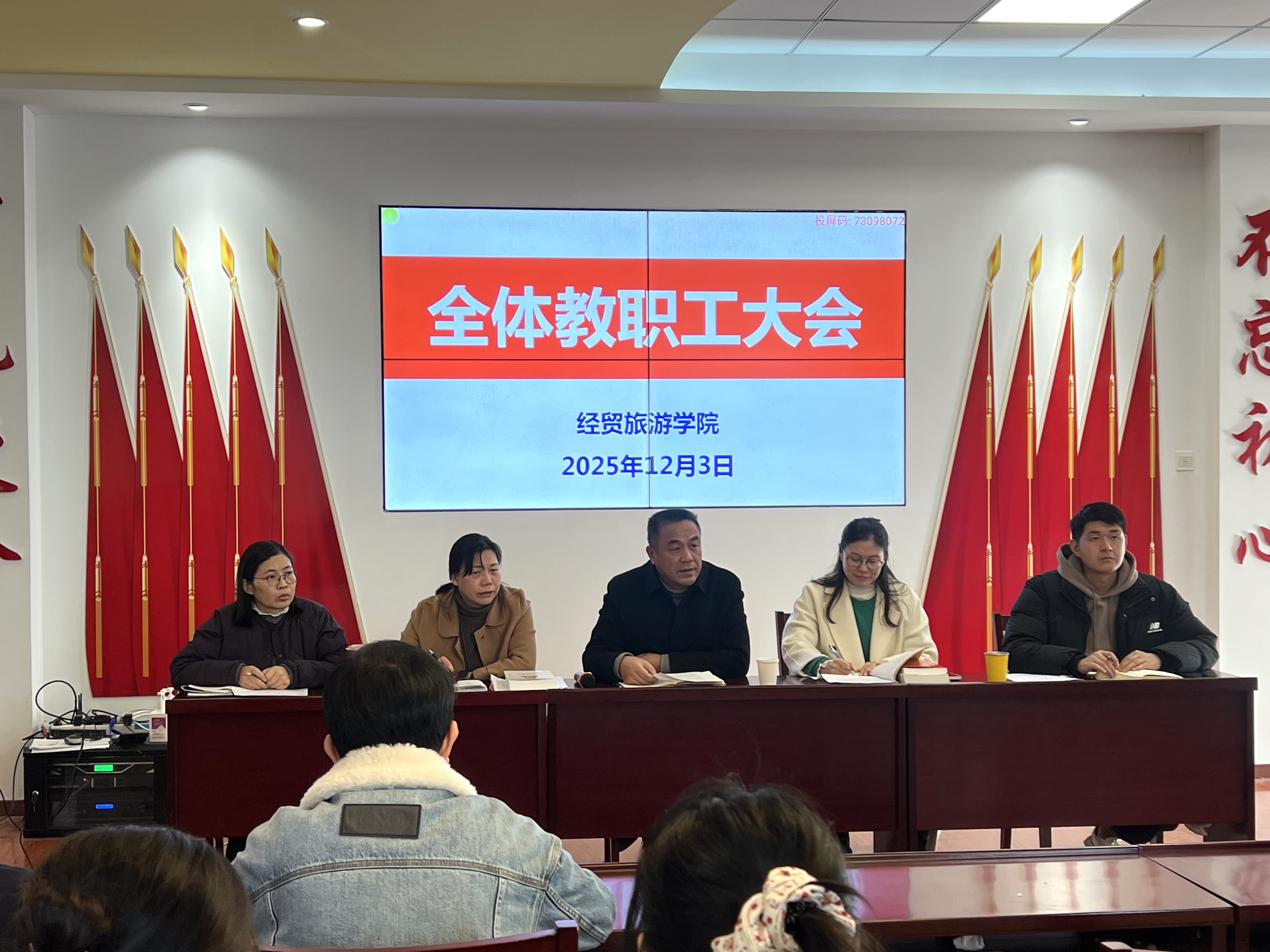 12月4日下午,经贸旅游学院在党性体验馆召开政治理论学习会暨全体教职工大会。全体教职工参加会议,校党委委员、副校长范家茂出席会议并讲话,会议由副院长付晓兰主持。