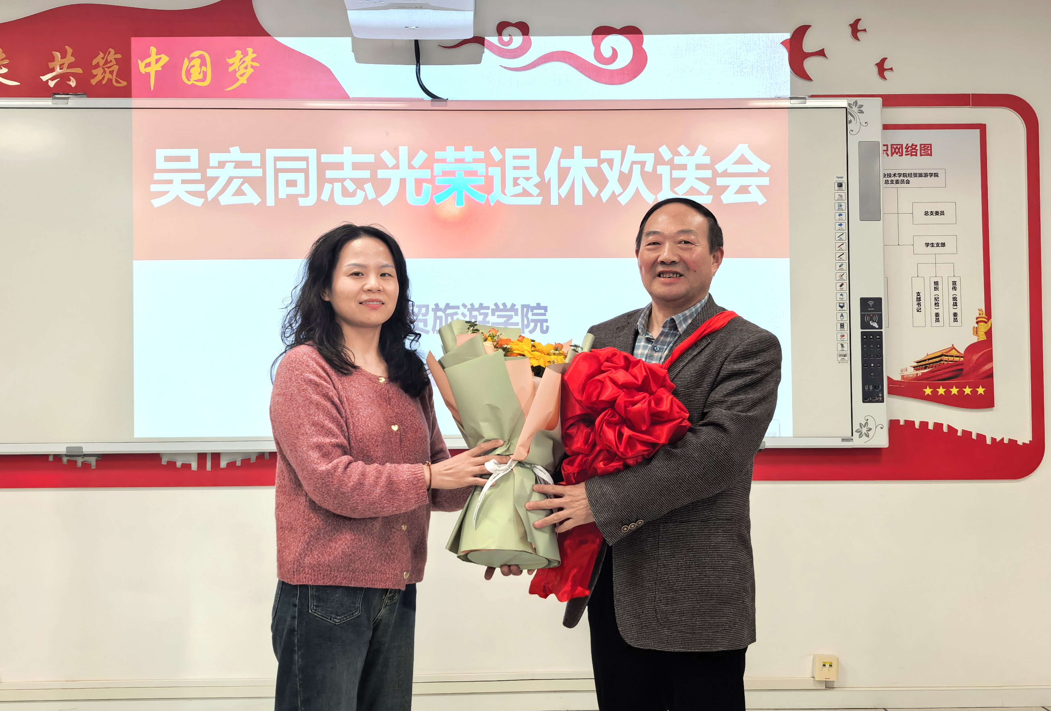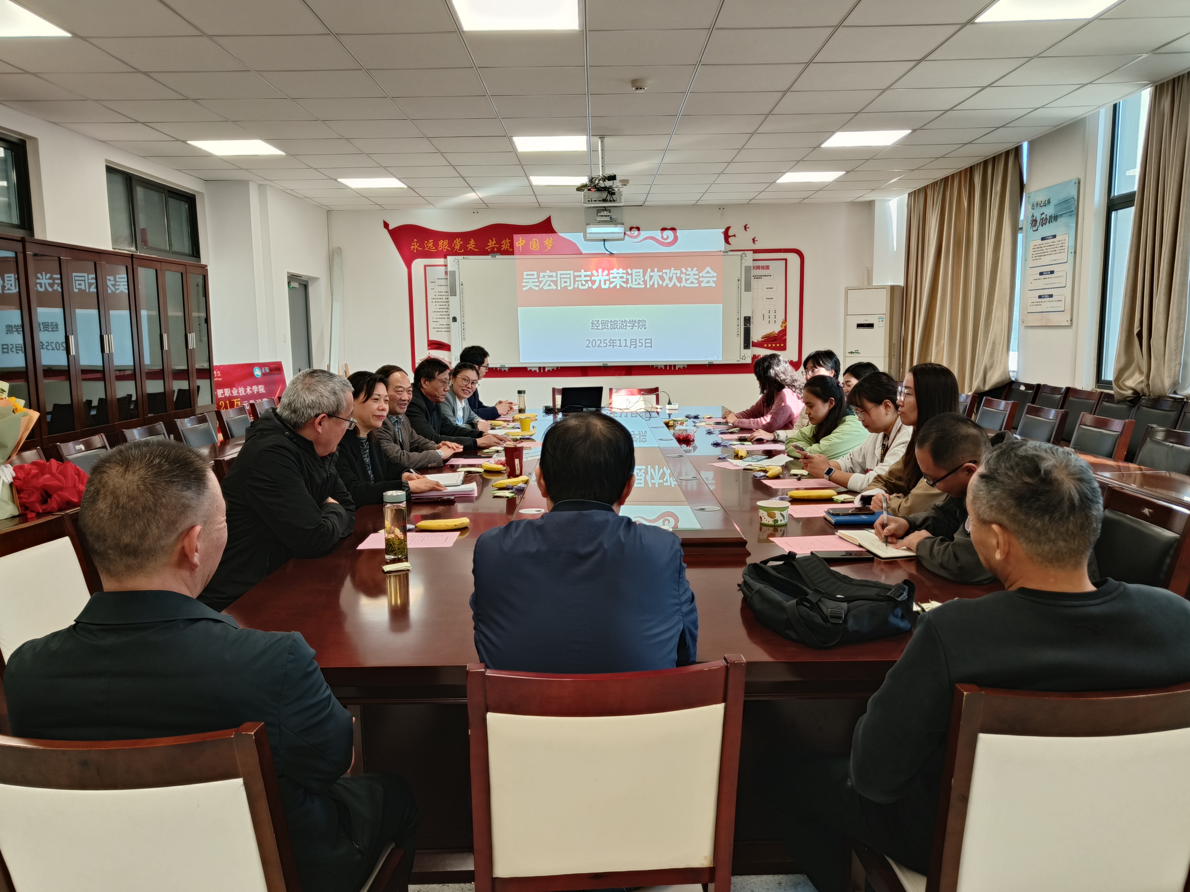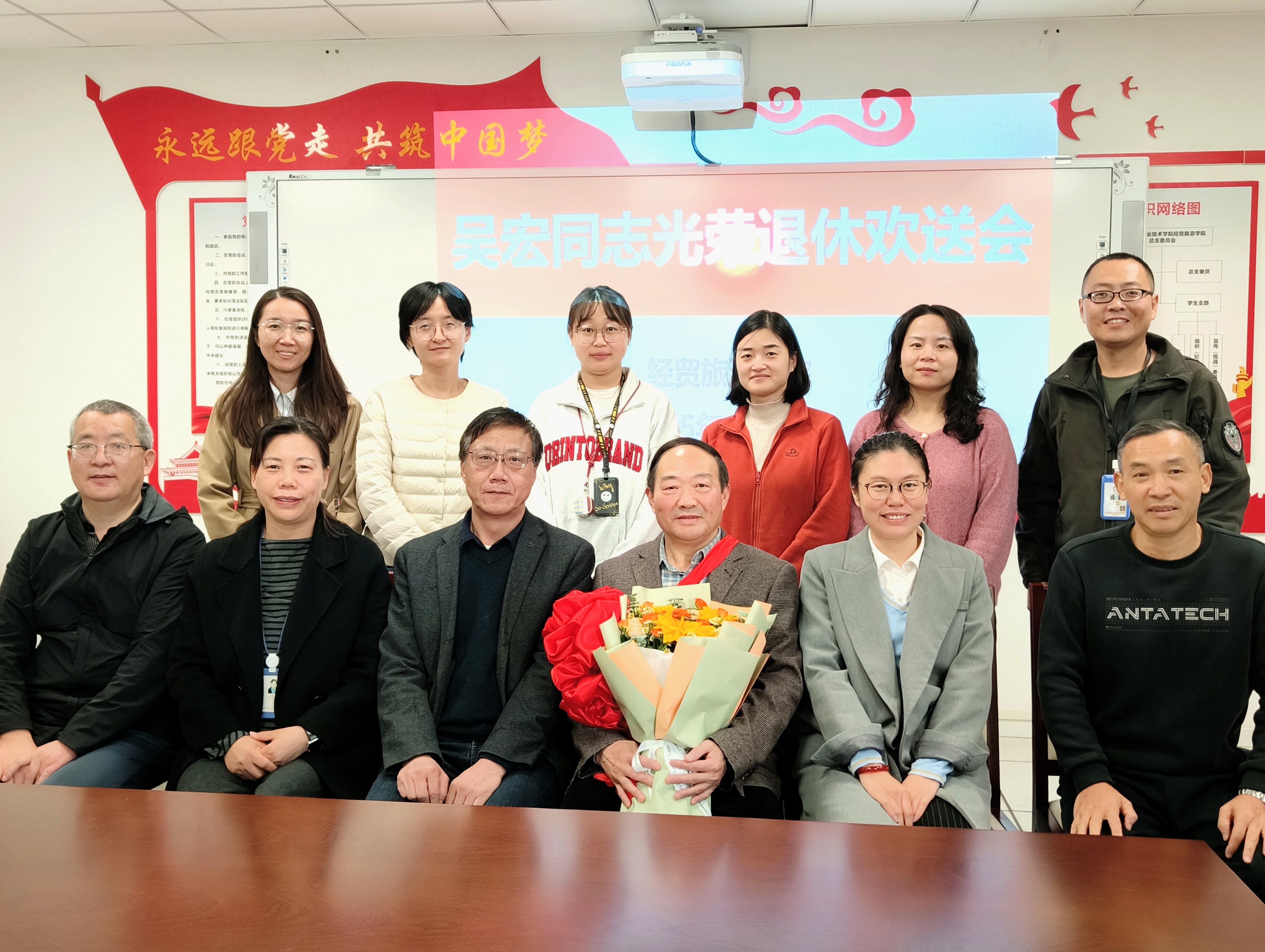 11月5日,经贸旅游学院在三楼会议室举办吴宏老师光荣退休欢送会。学院党政、部分老教师、青年教师代表以及学校财务处张其悦、胡蓉等教师参会,党总支副书记赵倩倩主持仪式。