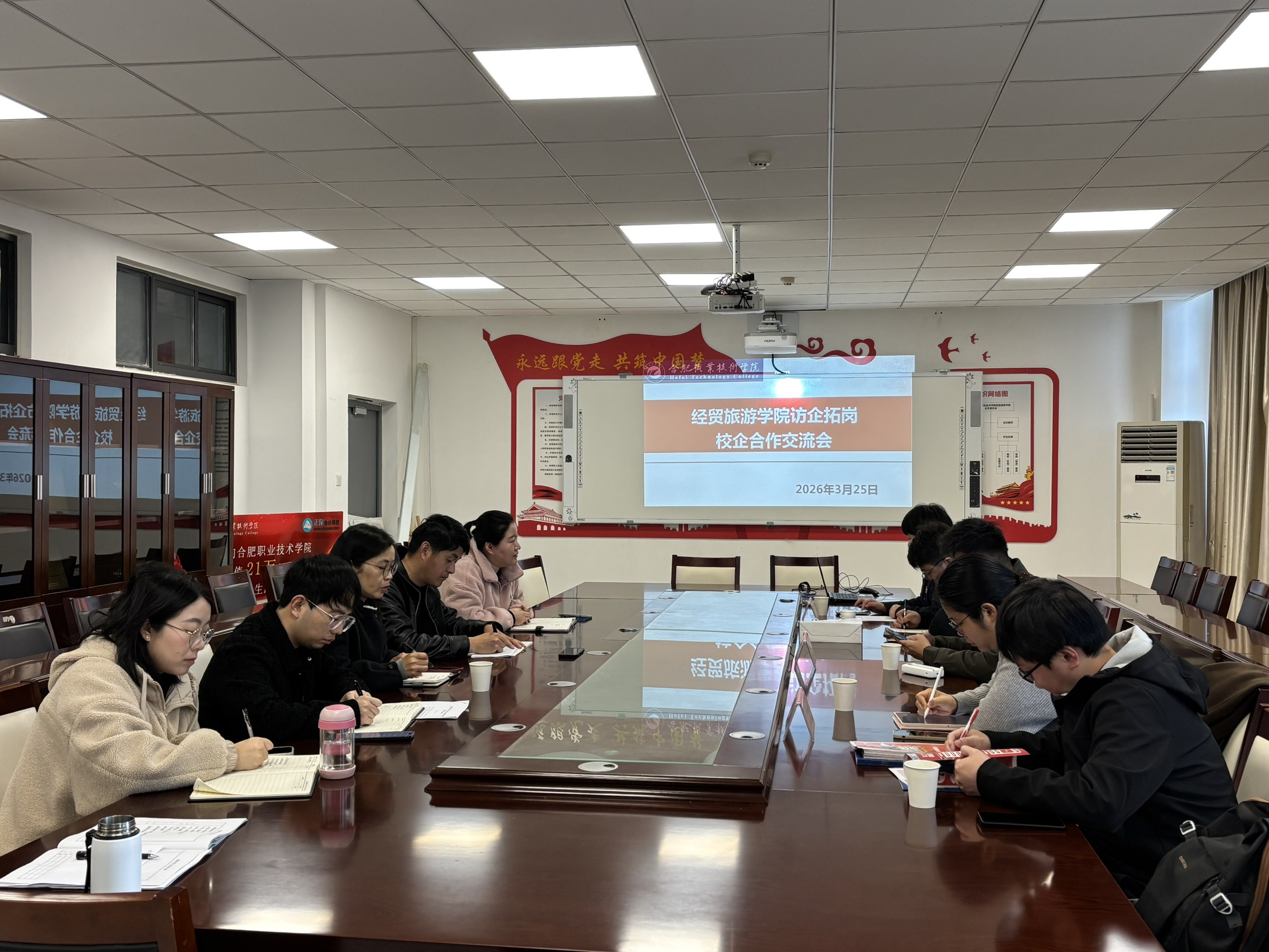 3月24日,经贸旅游学院在经贸楼3楼会议室召开校企合作交流会,本次会议邀请了安徽中谊诚律师事务所、安徽携程百事通国际旅行社有限公司、北京中公教育科技有限公司安徽分公司前来洽谈。副院长付晓兰、党总支副书记王明明、教学办公室主任刘博文、实习老师陶娟、就业辅导员查天舒、周燕参加本次会议,会议由查天舒主持。本次交流会旨在探讨深化产教融合、校企协同育人,精准对接行业人才需求,拓宽学生实习就业与职业发展渠道,共谋人才培养新路径。